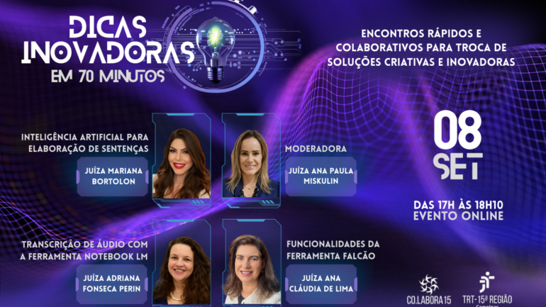 Projeto “Dicas Inovadoras em 70 Minutos” estreia no TRT-15 com foco em soluções criativas
